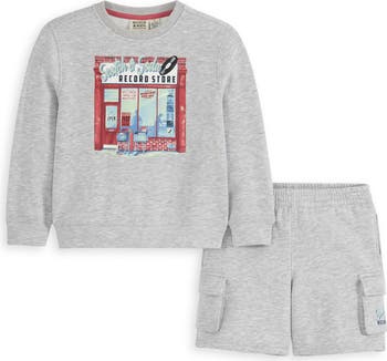 Give your music-loving tot a cool pick with this cotton-blend set pairing a long-sleeve T-shirt with a record store graphic and matching cargo-pocket shorts.