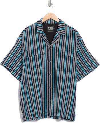 Relaxed Fit Stripe Short Sleeve Button-Up Shirt
