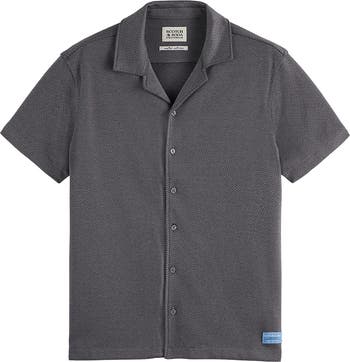 Pearly buttons add a fashionable finish to a dashing short-sleeve shirt framed by a casual notch collar.