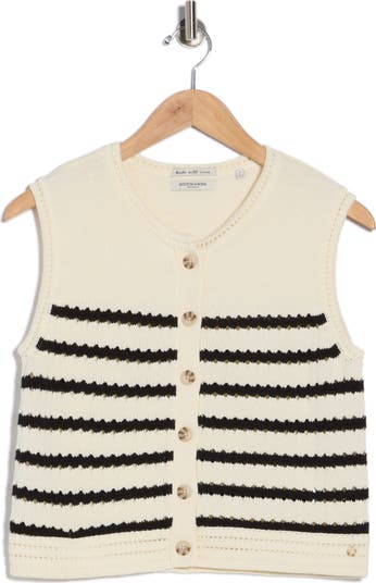 Classic stripes bring timeless style to this cotton sweater-vest designed with a button-front closure for multiple styling opportunities.