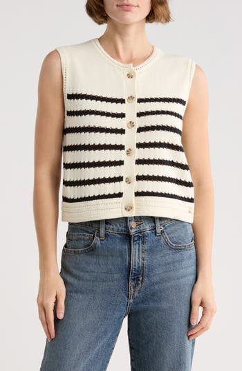 Classic stripes bring timeless style to this cotton sweater-vest designed with a button-front closure for multiple styling opportunities.