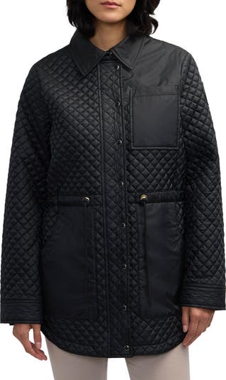 Wear it as a standalone or layering piece, this diamond-quilted shacket is coated in a water-repellent finish to keep you dry.