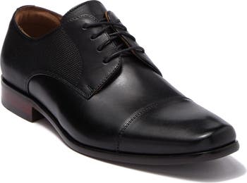 A leather derby with a cap toe and laced-up vamp offers a versatile, en vogue style into any look.