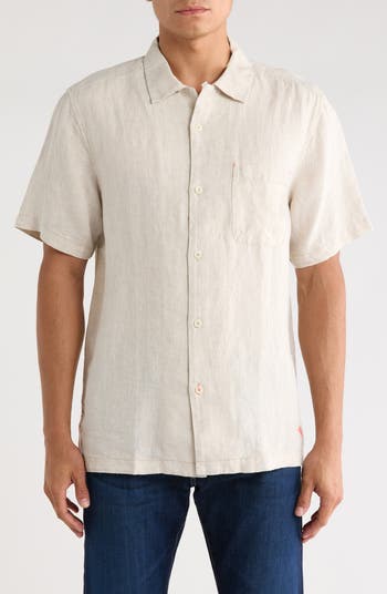 Slubbed linen brings soft, lightweight comfort to a camp shirt that keeps things casual with a straight hem and convertible notched collar.
