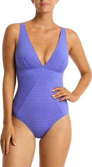 Strategic paneling complements your silhouette in this shapely one-piece complete with moderate back coverage and ready for some poolside lounging.