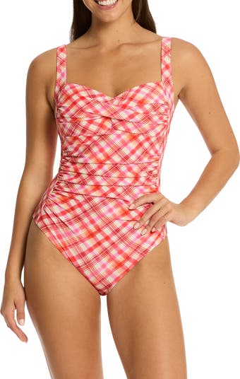 Romanticize the Western aesthetic in a plaid-patterned one-piece swimsuit built with a powermesh lining that enhances your comfort and support.