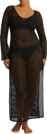 Keep it breezy by the water in this airy boho cover-up dress featuring long sleeves and side slits.