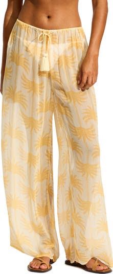 Cover up after a dip in these breezy wide-leg pants designed in a vacation-perfect tropical print.