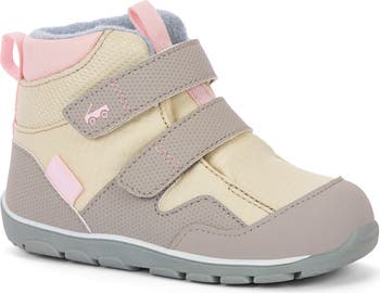 This waterproof boot with cozy insulation wraps little feet in toasty warmth in lower temperatures. Adjustable hook-and-loop straps make it easy to get on and off, and a fleece lining enhances comfort. A grippy tread provides added traction on wet or slushy surfaces.