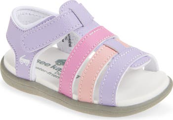 Pastel coloring amps up the sweet style points of a fisherman-inspired sandal ground on a durable rubber sole for ease in their every stride.