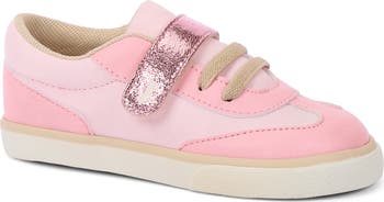 Retro style meets playground-ready comfort and durability in this lightweight, flexible sneaker topped with stretchy laces and an easy-on hook-and-loop strap.