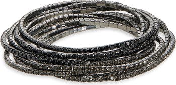 Stack on the shine with this glamorous set of polished stretch bracelets illuminated by sparkly crystals.