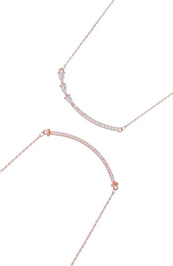 Refresh your jewelry essentials with this set of crystal-curved bar necklaces featuring a round-cut one and another with mixed cuts.