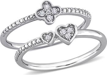 This complementary set of sterling silver rings topped with pavé diamonds light up your every gesture.