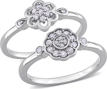 This complementary set of sterling silver rings topped with prong-set diamonds light up your every gesture.