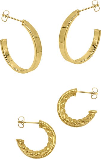 Refresh your jewelry essentials with this warm 14-karat gold plated set featuring twisted hoops and smooth ones.