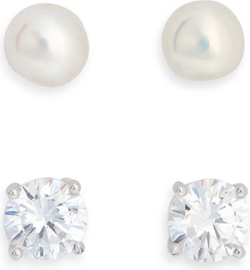 - Sterling silver/cubic zirconia/glass faux pearl