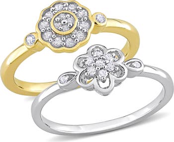 • SIMONA Set of 2 Sterling Silver Cubic Zirconia Solitaire & Band Rings