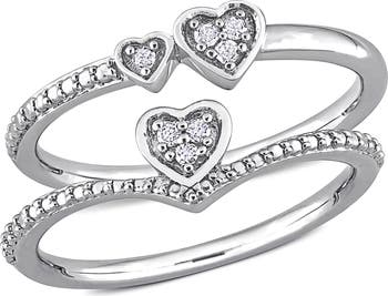 Pavé diamonds bring sweet sparkle to this romantic heart stackable ring set crafted from polished sterling silver.