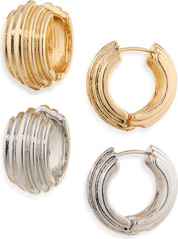 Pillowy ridges catch the light on this set of wide huggie hoop earrings that bring instant shine to your day.