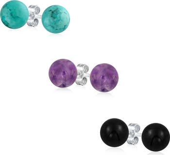 Updating your jewelry collection is made easy with this trio of signature sterling silver stud earrings fronted with an assortment of semiprecious stones.