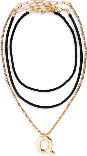 Move the bubbly initial pendant between three necklaces you can stack or wear solo.
