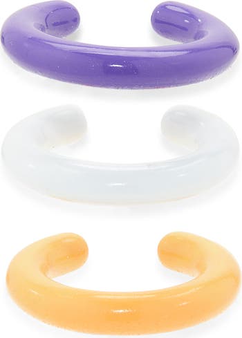 These slim, smooth ear cuffs will add a pop of color to your ear whether worn solo or stacked.