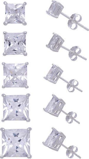 Refresh your jewelry essentials with this set of five pairs of sterling silver earrings with princess-cut cubic zirconia solitaires in graduated sizes.