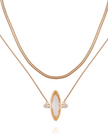 Enjoy two ways to sparkle and shine with this set of mixed chain necklaces accented with a crystal pendant, in gleaming goldtone plating.