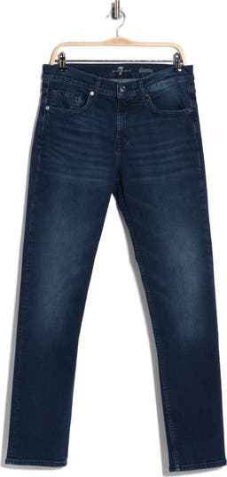 Slim but not tight, these jeans are cut from soft, vintage-inspired stretch denim with excellent shape recovery and a gently faded dark wash.