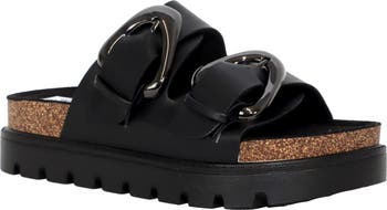 Elevate your grab-and-go lineup for off-duty days with this slide sandal balanced upon a lugged sole and styled with buckled straps.