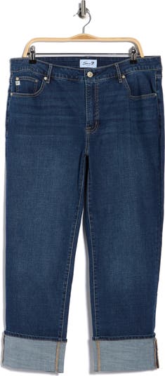 Upgrade your denim rotation with these stretch-kissed straight-leg jeans featuring a high waist and wide cuffed hem for an of-the-moment look.