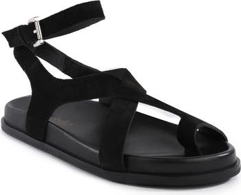 Leather straps top this laid-back sandal set on a walkable heel.