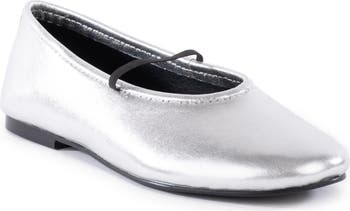 An elasticized mary jane strap offers a secure fit on a metallic leather flat that will complement your polished looks.