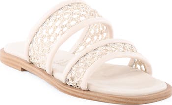 Suede-trimmed macramé-knotted straps bring a texture-rich look to this Italian-made slide sandal that's a warm-weather staple.
