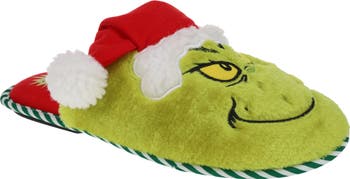 The holiday rush may leave your heart feeling three sizes too small, but your feet will be just right in this cushy faux-fur slipper depicting Dr. Suess' The Grinch. Match the whole family for festive, picture-perfect style that will have to back to singing with the Whos in no time.