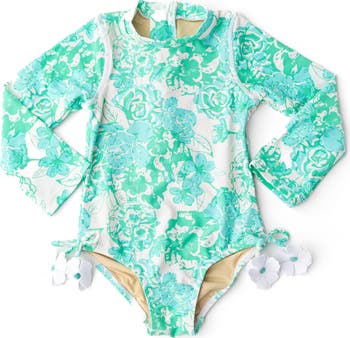 Built-in sun protection gives you confidence when your kiddo is enjoying the water in this one-piece rashguard swimsuit framed with long sleeves.