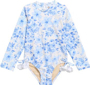 Kids' Hibiscus Rose Long Sleeve One-Piece UPF 50+ Rashguard Swimsuit