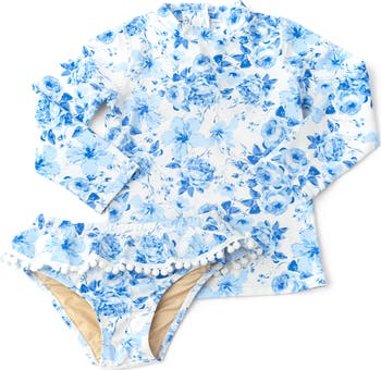 Kids' Hibiscus Rose Long Sleeve Two-Piece UPF 50+ Rashguard Swimsuit