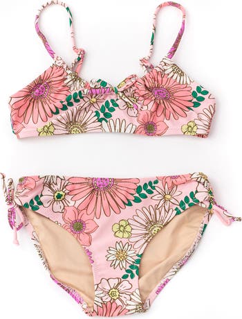 A retro blossom motif and dainty bows bring extra charm to this sun-ready two-piece swimsuit.