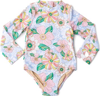 Kids' Retro Floral Long Sleeve One-Piece UPF 50+ Rashguard Swimsuit
