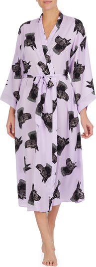 A longline silhouette brings romantic elegance to this silky-smooth robe with three-quarter sleeves.