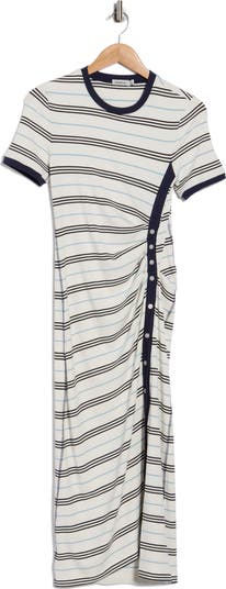 Perfect for sunny days, this crewneck midi dress made from a lightweight, stretchy blend is detailed with a ruched, button side for a figure-flattering fit.