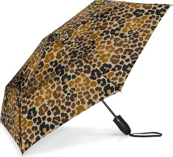 A wind-resistant canopy provides dry coverage on a whimsically patterned umbrella that opens and closes automatically for fuss-free function.