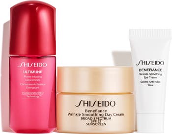 How to use: Ultimune Power Infusing Concentrate: Use morning and evening after cleansing, but before moisturizing. Dispense onto fingertips and smooth evenly over face and neck. Benefiance Wrinkle Smoothing Day Cream SPF 23: Apply liberally 15 minutes before sun exposure. Reapply at least every 2 hours. Benefiance Wrinkle Smoothing Eye Cream: Use in the morning and evening. Dot a rice grain-size amount around the eye area and use ring finger to gently massage.