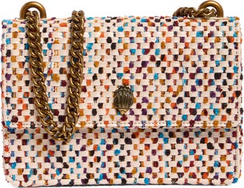 A colorfully woven silhouette brings whimsy style to a classy flap shoulder bag fashioned with a convertible gleaming chain strap and signature eagles-head hardware.