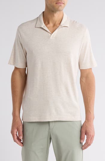 Soft, cotton-blend fabric brings timeless comfort to a short-sleeve polo framed with a charming Johnny collar.