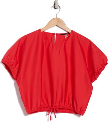Brighten your day with this crisp cotton-blend crop top framed by pretty puff sleeves and a bubbly hem.