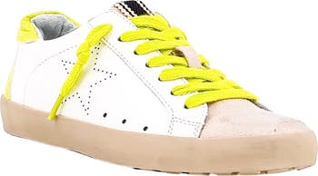 Cool contrasting details bring eye-catching allure to this sporty low-top sneaker, complete with a lightly distressed bumper midsole for a coveted look.