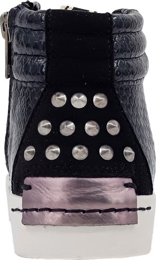 Glossy studs and a snakeskin-embossed texture add playful charm to this high-top sneaker, featuring a cushioned footbed and handy side-zip closure for accessible style.